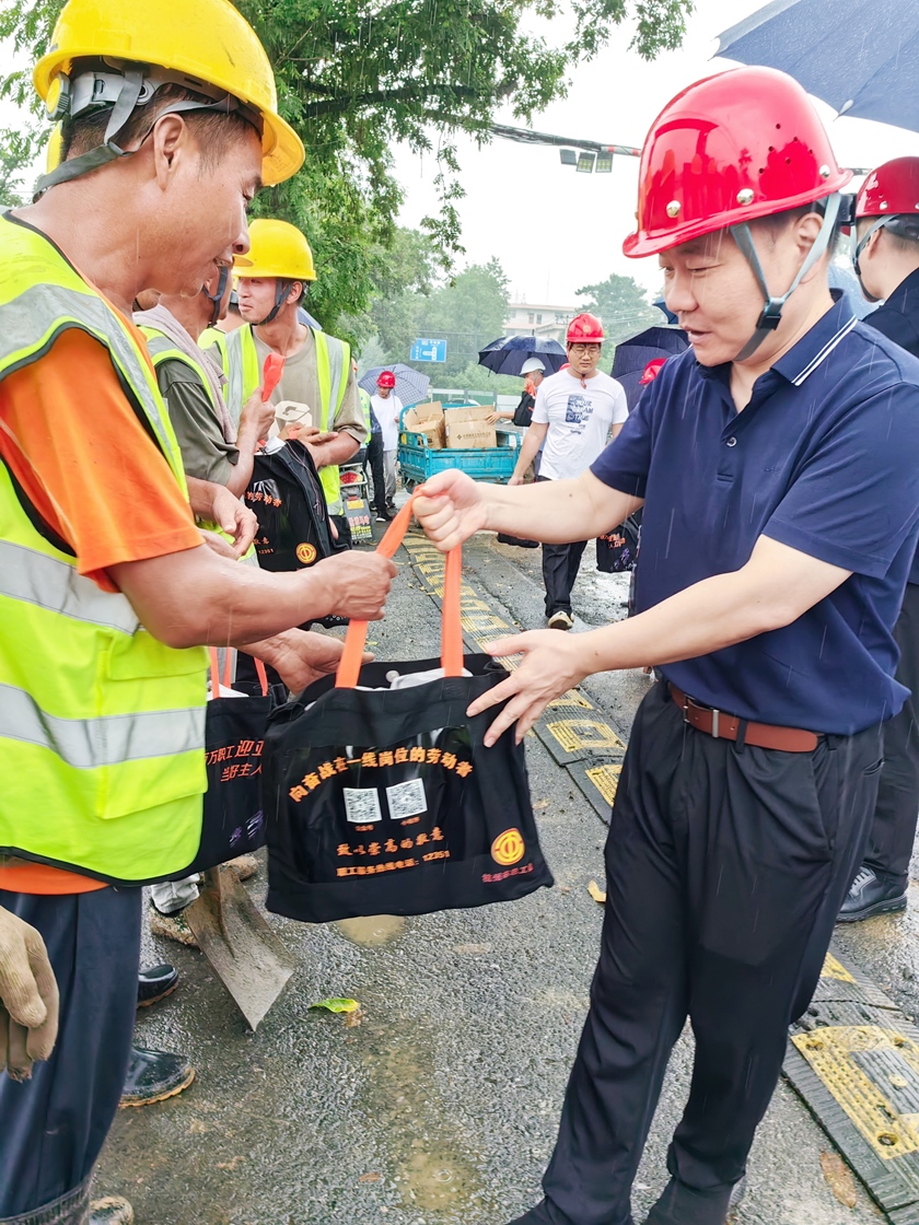 在現(xiàn)場,薛明君主任親切問候了每一位施工人員,并親手送上慰問禮品,叮囑他們在戶外工作時一定要做好高溫防護(hù)和消暑措施,避免中暑。